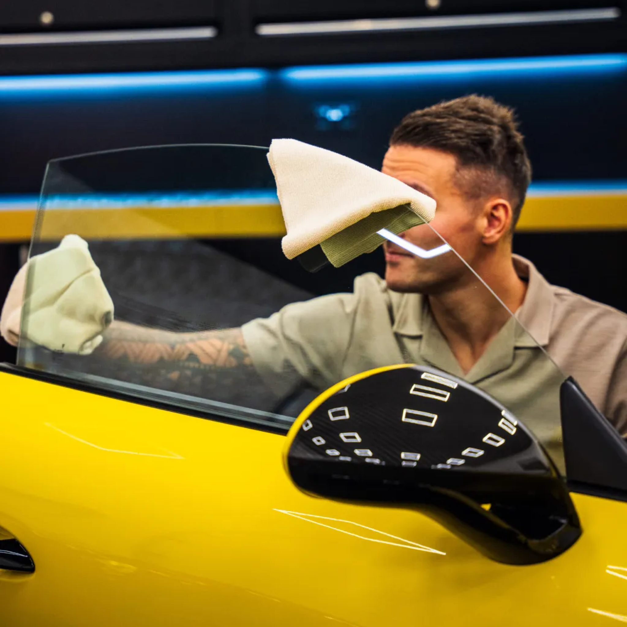 - Prepare Towels: Use two clean microfibre towels to avoid streaking and cross contamination.