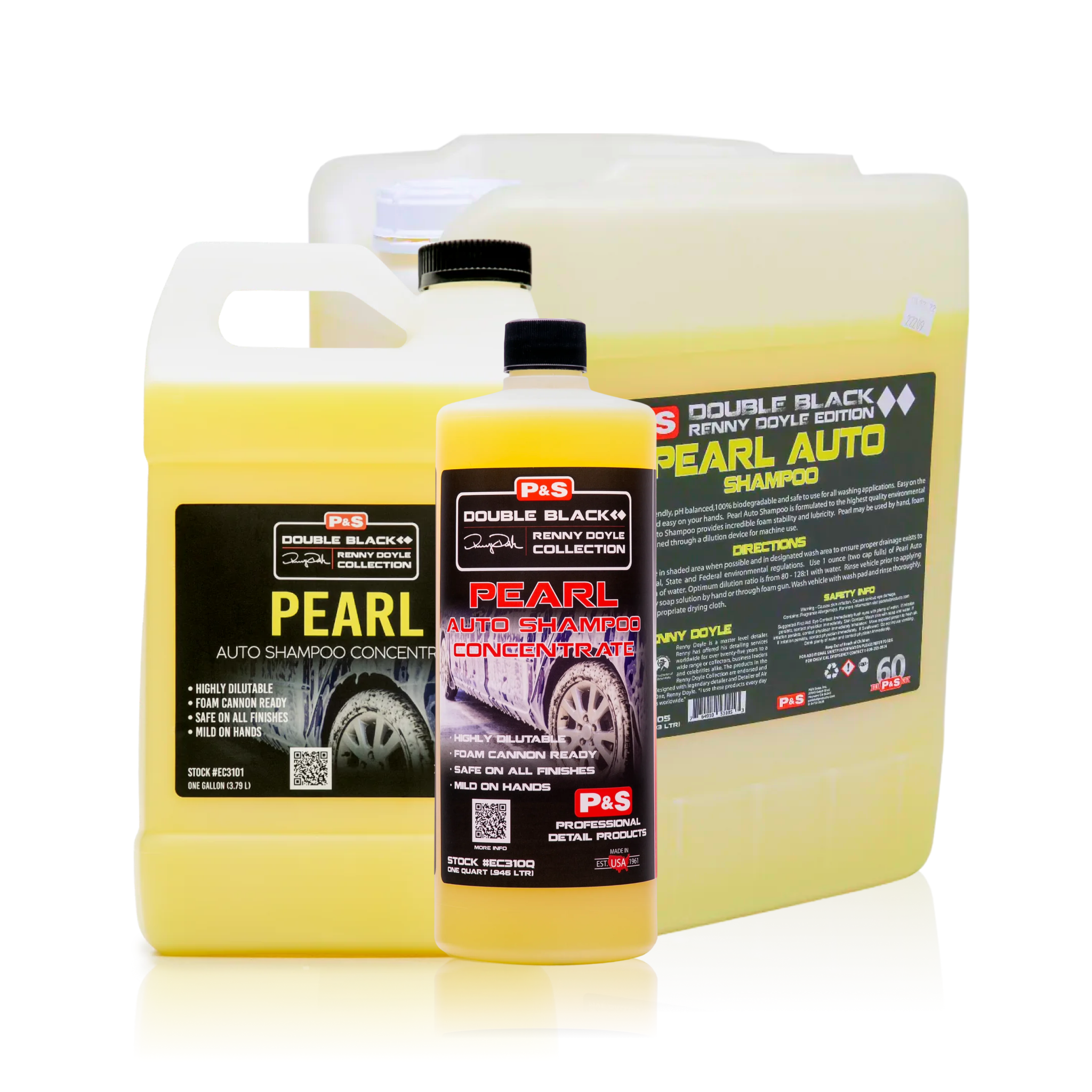 P&S Pearl Auto Shampoo is a premium, eco-friendly car wash from the Double Black Renny Doyle Collection. Its pH-balanced, 100% biodegradable formula delivers rich foam and high lubricity to safely lift dirt while remaining gentle on paint, protection layers, and your hands.